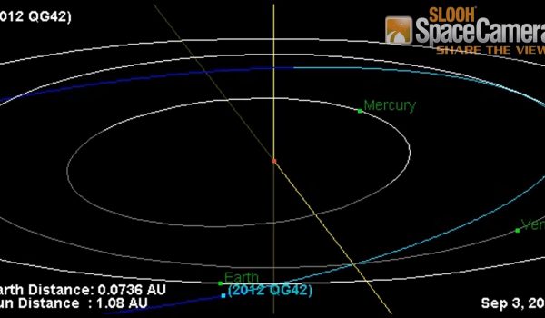 On the evening of September 13-14, two asteroids classified as “Potentially Hazardous” streaked past Earth with no potential of impacting the planet. Asteroid 2012 QC8, with a diameter of one kilometer, passed at 23 lunar distances (8.7 million km). Asteroid 2012 QG42, with dimensions of 190-430 meters, passed within 7.5 lunar distances at 2.8 million km.
