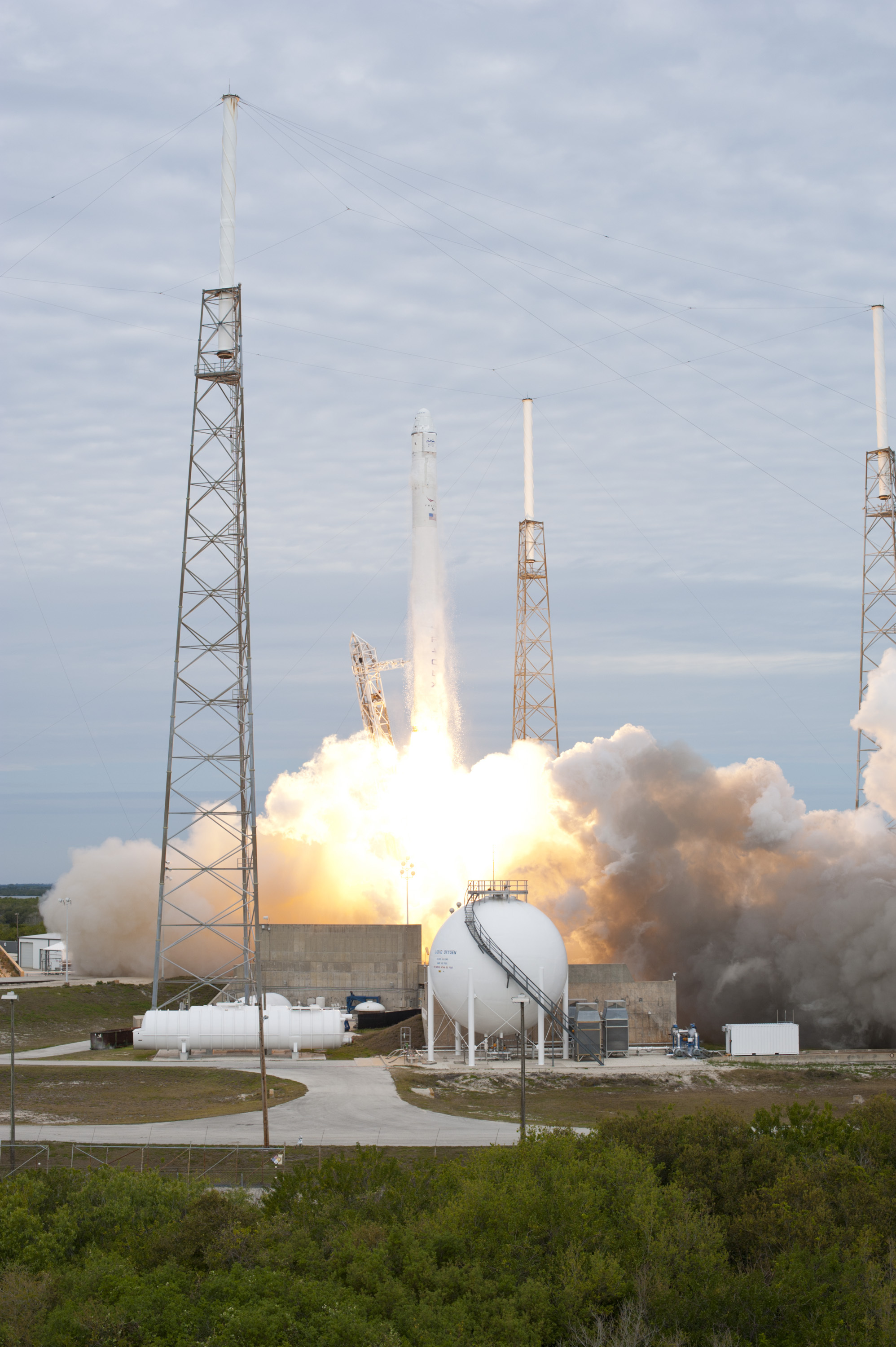 Falcon 9 lifts off on teh second commercial resupply mission to ISS (Credits: NASA/Tony Gray and Robert Murray).