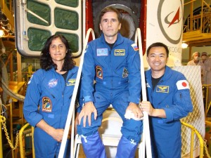 The new Expedition 32 crew consists of Suni Williams, Yuri Malenchenko who commands the launch Soyuz, and Akihiko Hoshide.